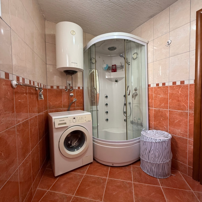– Zwei Badezimmer mit Duschen und Waschmaschine